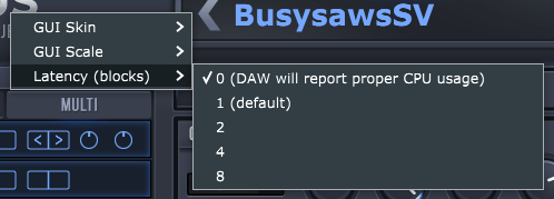 Users with fast CPUs may want to set it to zero, in which case the DAW audio thread will wait for the DSP to finish its work, eliminating the additional latency entirely. A side effect of this is that the DAW will report the proper CPU usage, so if you’re unsure if the “spikes” are real, set it to zero to see what the real CPU load is.