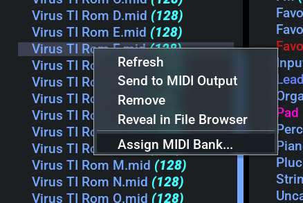 To remove a bank assignment, right-click and select “Clear MIDI Bank (Bank N)”.